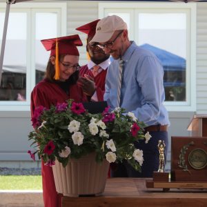 Then it was time for “Pomp and Circumstance” to introduce Bellcate School’s graduating class; Abdullahi Awayle, Hannah Wilde and Shawn Hathaway. The ceremony included heartfelt speeches by staff, meaningful words of gratitude expressed by each graduate, the presentation of each graduate’s High School Diploma and a lot of tears. Abdullahi prepared an incredible speech that acknowledged everyone by name who had helped him on his path towards graduation. He had each person stand up to be publicly recognized for their commitment and support. “The level of care and attention for others that Abdi communicated in his graduation speech reflects how much he has grown. It was really a beautiful expression of genuine gratitude,” reflected Jac Treanor. “My favorite part of the day was when graduate Shawn Hathaway pulled out of the parking lot in his Dad’s monster truck with his classmate Marissa. She needed to climb up on a table to get in. It was like a movie,” said smiling Alex Rocheleau, Bellcate Transition Coordinator. “I am so proud of all of them.”