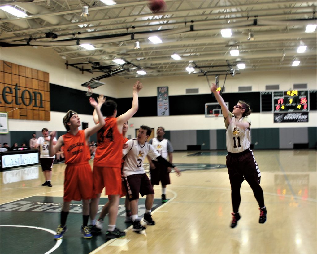 New to the team this year was Colby F and Nate. Both kids had been training incredibly hard to get a spot on this year’s team. “I want that trophy” said Colby when looking at last year’s trophy. Colby, playing in front of his great grandfather for many of the games, wooed the crowd with his sweet left handed jump shot that he would let fly from anywhere on the court. “Colby has, what I like to call, unlimited range” comments coach Jamie. Similar to another Bulldog legend, Johnny Moretti, there isn’t a spot on the court that Colby does not like to shoot from!” adds Moore. Colby showed no nerves in his first State Championship game, as he knocked in a sweet 2 pointer from the left block, that ignited the Bulldogs into the second quarter. Nate, who also had a huge fan following, developed himself into quite a 3 point shooter by the end of the year. This was very evident in the championship game. With time winding down in the 4th quarter, coach Jamie called Nate over to the three point line in front of the bench, and instructed Eric to pass him the ball. As Nate caught it, his teammates from the bench yelled, “shoot it!” Nate, looked at the bench and said “like you have to tell me that!” He then heaved up a three pointer and banked it in for 3 points! As the crowd erupted, Nate ran back on defense with pride running through his veins. However, Nate wasn’t done yet. A few minutes later, Nate caught the ball at the same spot. Once again, his teammates yelled out “Shoot it!” Nate once again had a comment for his teammates. “I can make this shot with my eyes closed guys!” Nate let the ball fly, and this time the ball hit nothing but the net. The crowd once again roared and the chant of “NATE NATE NATE” was heard across the campus of Castleton University.