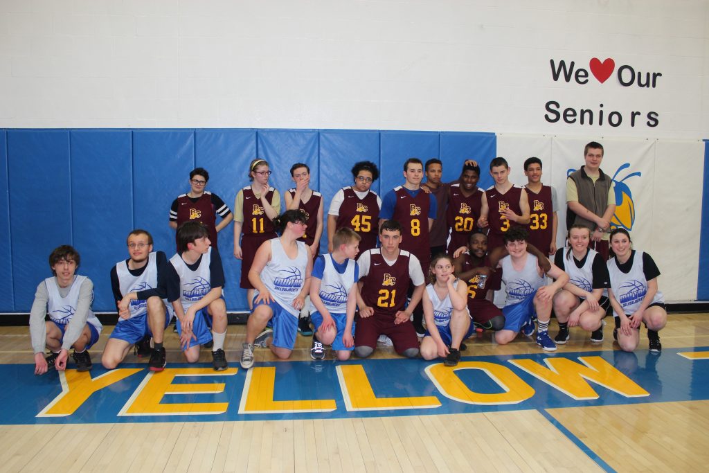 The Bulldogs gold basketball team opened up their first ever season in the interscholastic unified basketball league by splitting a pair of games with Montpelier and Milton High schools last week. This marks another first in Bellcate history, as the Bulldogs won their first VPA unified basketball game by beating a feisty Montpelier team 32-24 on Wednesday.