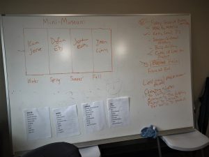 The class meets on Fridays and the first 4 classes have been very productive. The class operates like a working lunch. Everyone’s voice is heard and valued and each work session is focused and practical. Thus far we have researched Dunquin, set a timeline for the creation of our micro museum and have started initial work on our seasonal display. This past Friday, Liesl from EWCed joined our work group to add inspiration and valuable networking to our project. Liesl agreed to put our team directly in contact with the creators of the micro museum idea from the original video our class watched. To our class this was an impressive full circle! Please stay tuned as The Ireland Project continues to take amazing shape!