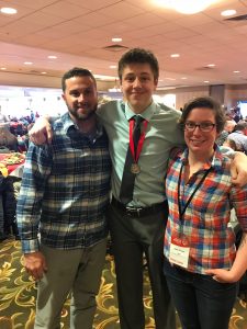 Later that night, Kolbi and I went to the Killington Grand Hotel for a dinner and dance put on by Special Olympics. We sat with Kaila, and some other Special O staff, including Sue Minter who is new director of Special Olympics Vermont. Kolbi was very polite and proud to talk about his winnings from earlier in the day. While at the dance, Kolbi met back up with his Bellcate alumni friends and met a new friend named Kyle. The boys danced, laughed, and Kolbi showed off his reverse worm to the group! The boys had a great time.