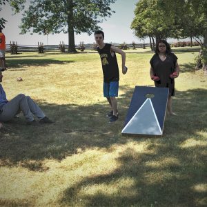 About 60 of us descended upon the park to a very welcoming State Park Staff. We always have music in tow with DJ Jeff Springer who blessed us with his Super Sounds! Troy and Morgan also rallied to set up an African drumming circle. A group of enthusiastic swimmers and paddle boarders took to the lake while others partook in a whole host of field games; can jam, corn hole, spike ball, football, volleyball and soccer. We had a blast! No party at Bellcate is without a very coordinated effort related to food. Jac on the grill and Marta setting up the multitude of staff prepared dishes made for a very yummy spread.