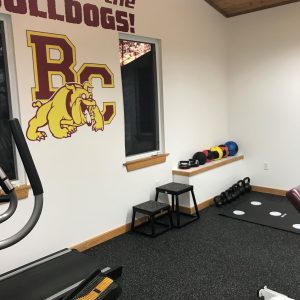 This fall Athletic Director, Jamie Moore, set out to give Bellcate School’s on site fitness center a face lift. The redesign includes a fresh coat of paint, new floor, inspiring wall art, smart tv, sound system and a few pieces of new equipment. 2nd quarter Jamie cut the ribbon on our new center. Named “The Dog House,” in honor of our Bellcate Mascot the Bulldog, our fitness center has been an excellent addition to our athletic program. The Dog House is a great place for strength, cardio, and agility training as well as for balance and flexibility development.